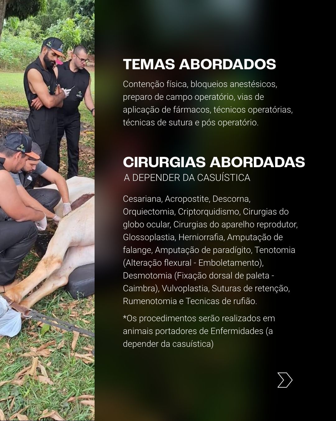 Pré-requisitos: Apresentação de declaração de matrícula e/ou declaração de frequência em curso de Medicina Veterinária, declaração de conclusão de curso ou carteira profissional expedida pelos Conselhos Regionais de Medicina Veterinária (apresente no dia e no local do curso)